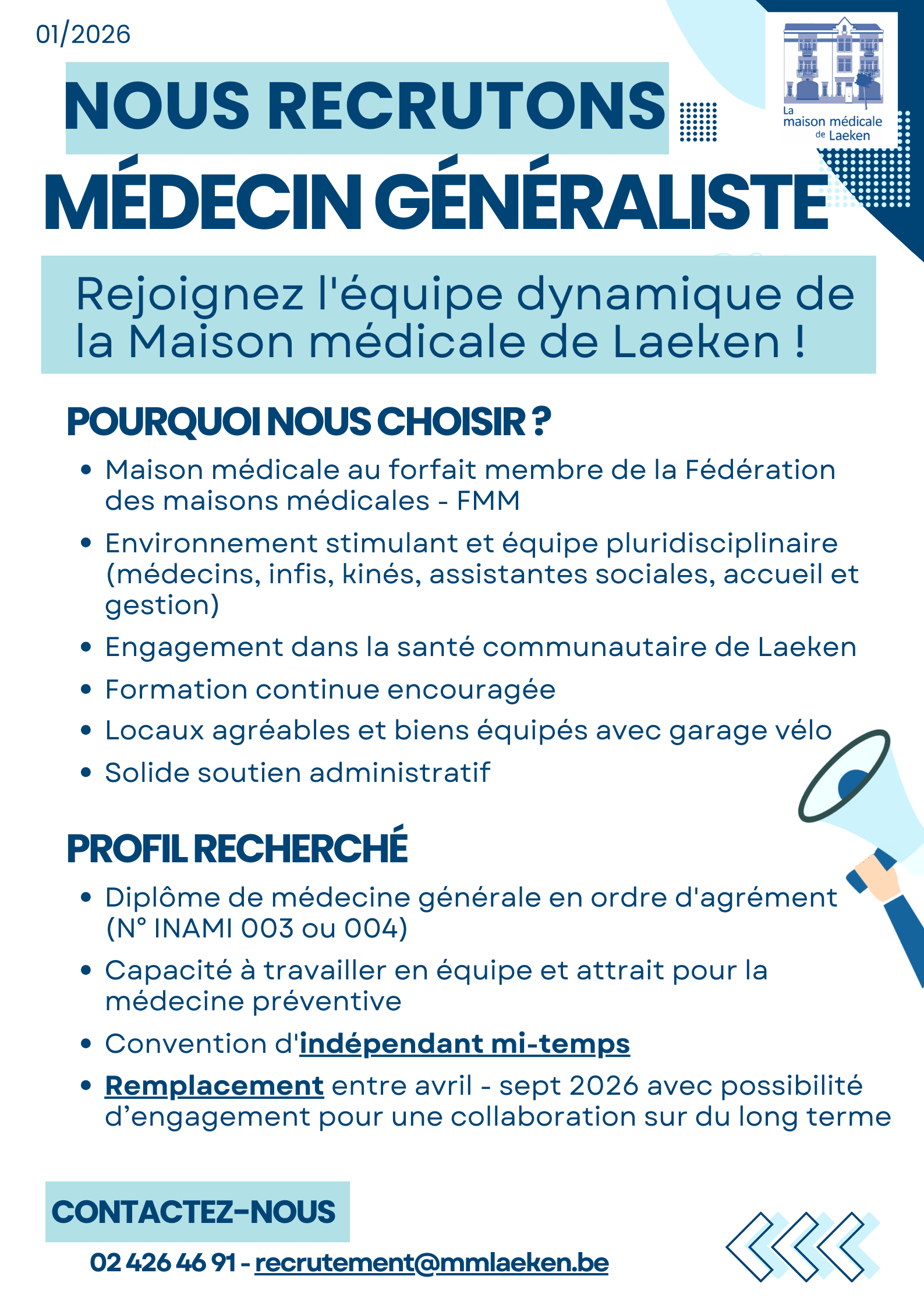 Rejoignez l'équipe dynamique de la Maison médicale de Laeken !